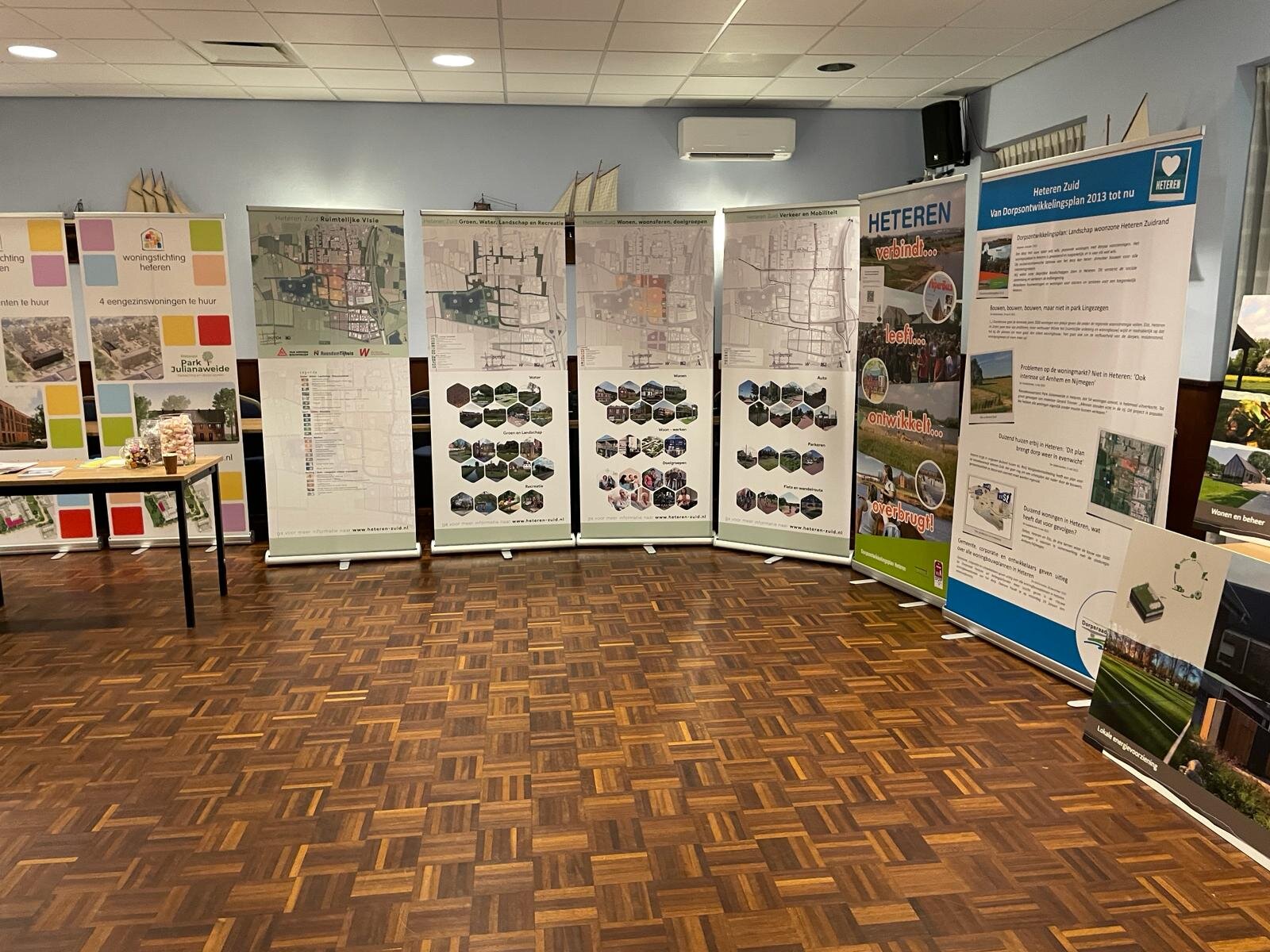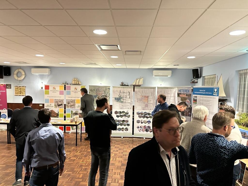 Op het formele deel van de avond volgde vervolgens een ‘woonmarkt’ waar de betrokkenen via banners hun plannen persoonlijk konden toelichten en tevens geïnteresseerden te woord stonden. Al met al was het een zeer waardevolle start van het project, met als doel een integraal plan te maken dat door de inwoners van Heteren wordt gedragen!