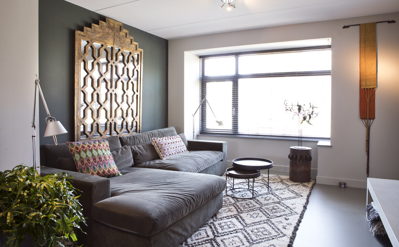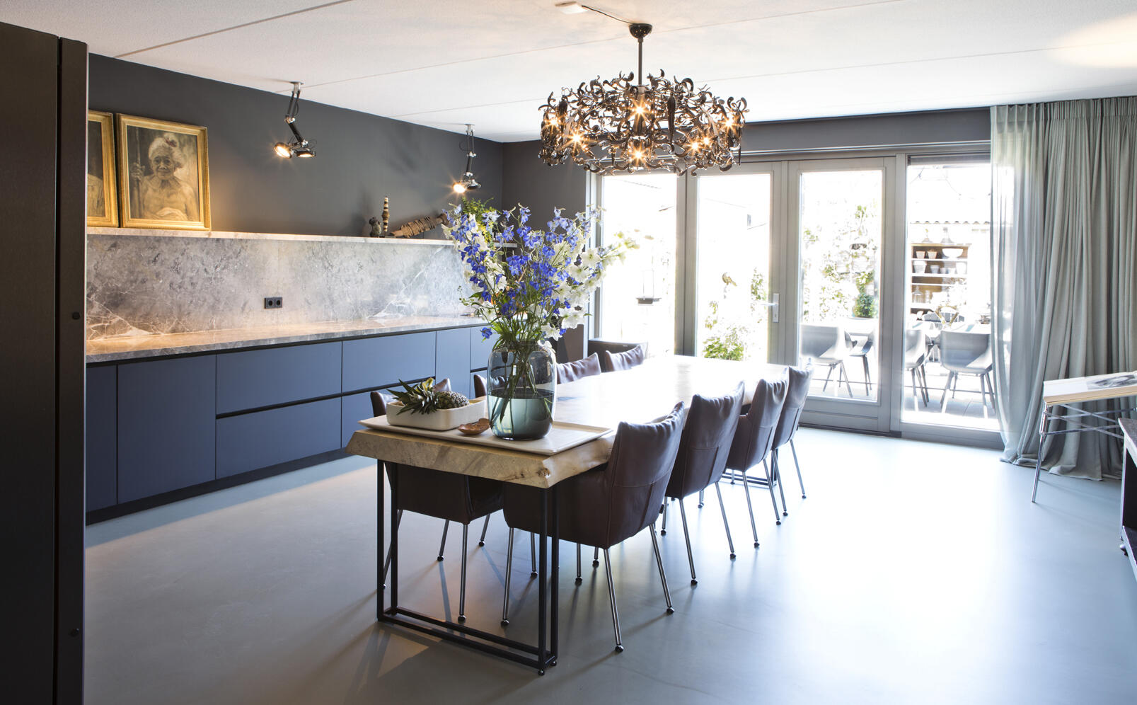 Cocky en Rob hebben in de woning inmiddels een heel eigen stijl gecreëerd met bijzondere meubelstukken, ornamenten, kunstwerken en een opvallende indeling. Zo is de keuken naar de achterzijde van de woning verplaatst. “Daar konden we, ook door de uitbouw van 2 meter 40, een veel grotere keuken realiseren.”