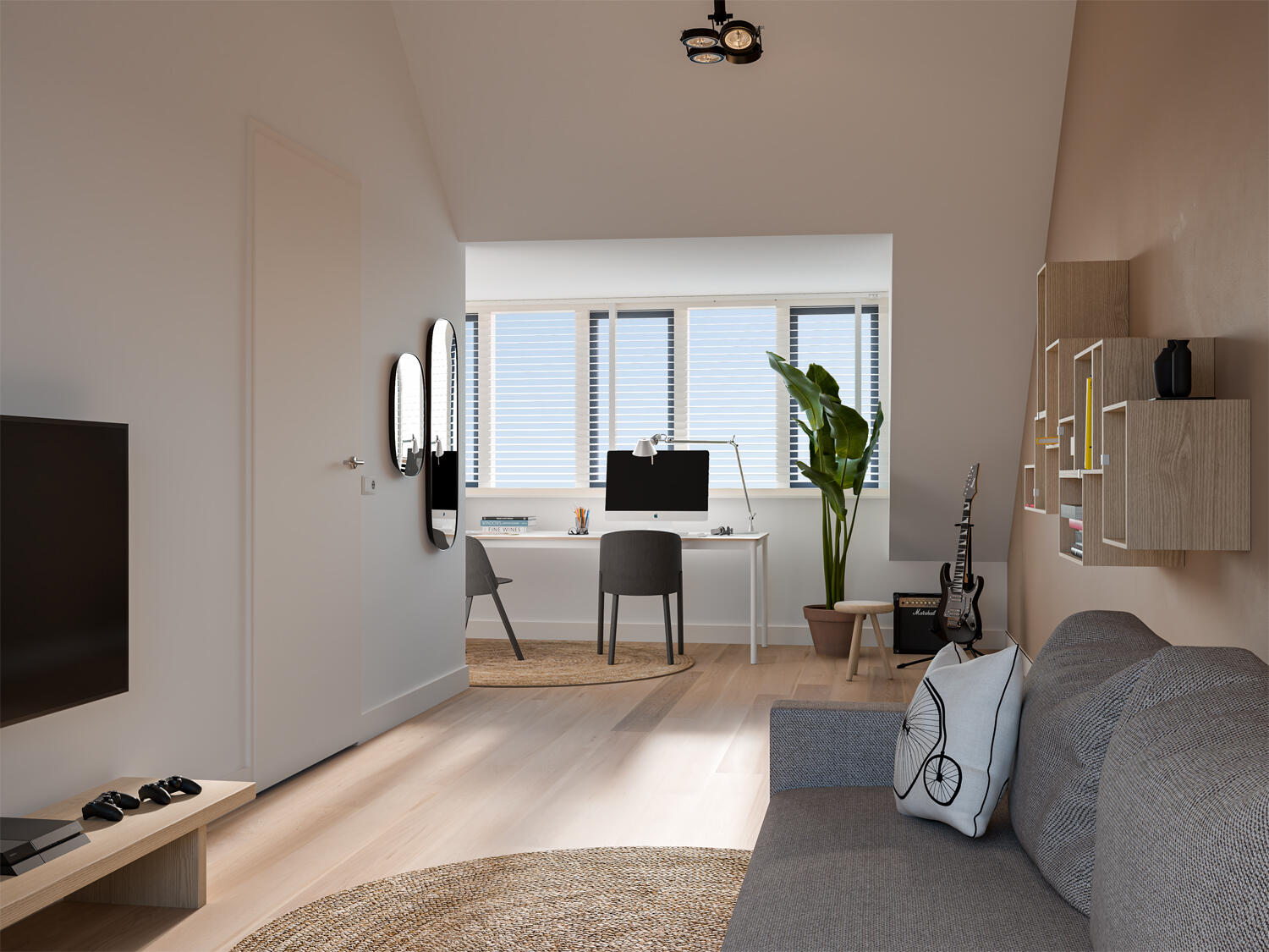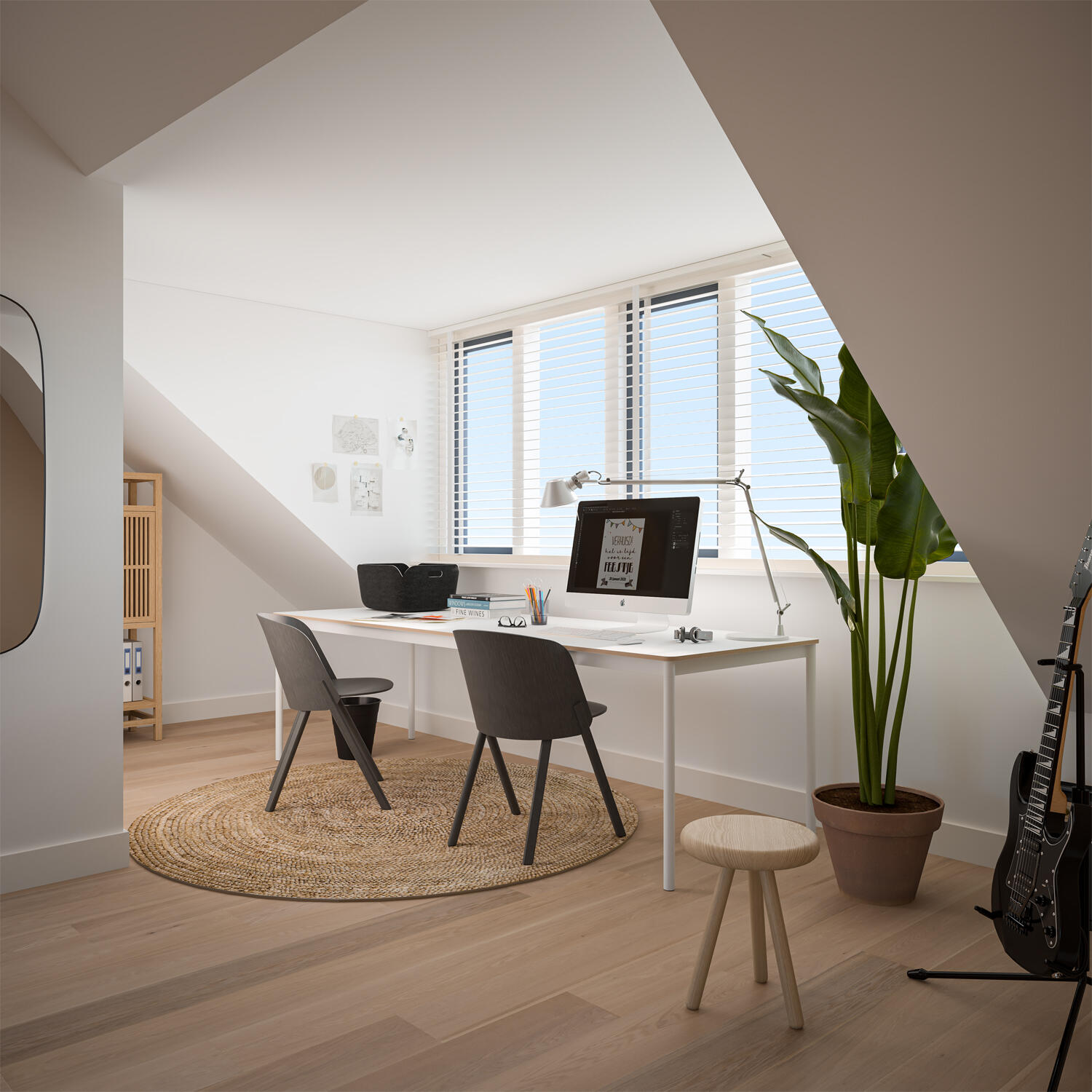 De tweede verdieping is ruim van opzet. Met een combinatie van diverse indelingsopties maak je hier een prachtige woonverdieping met bijvoorbeeld twee slaapkamers, een tweede badkamer en een was-/bergruimte.